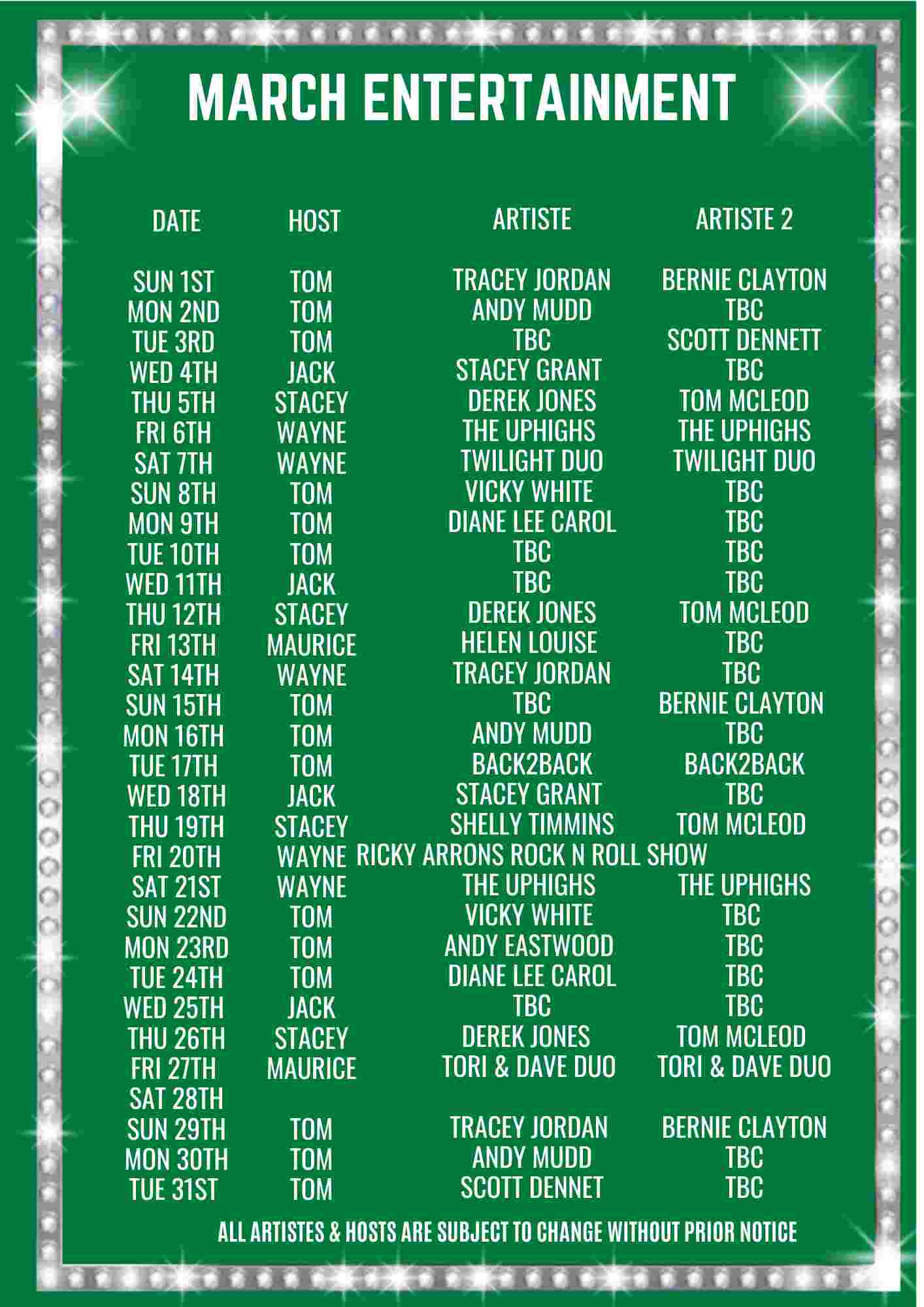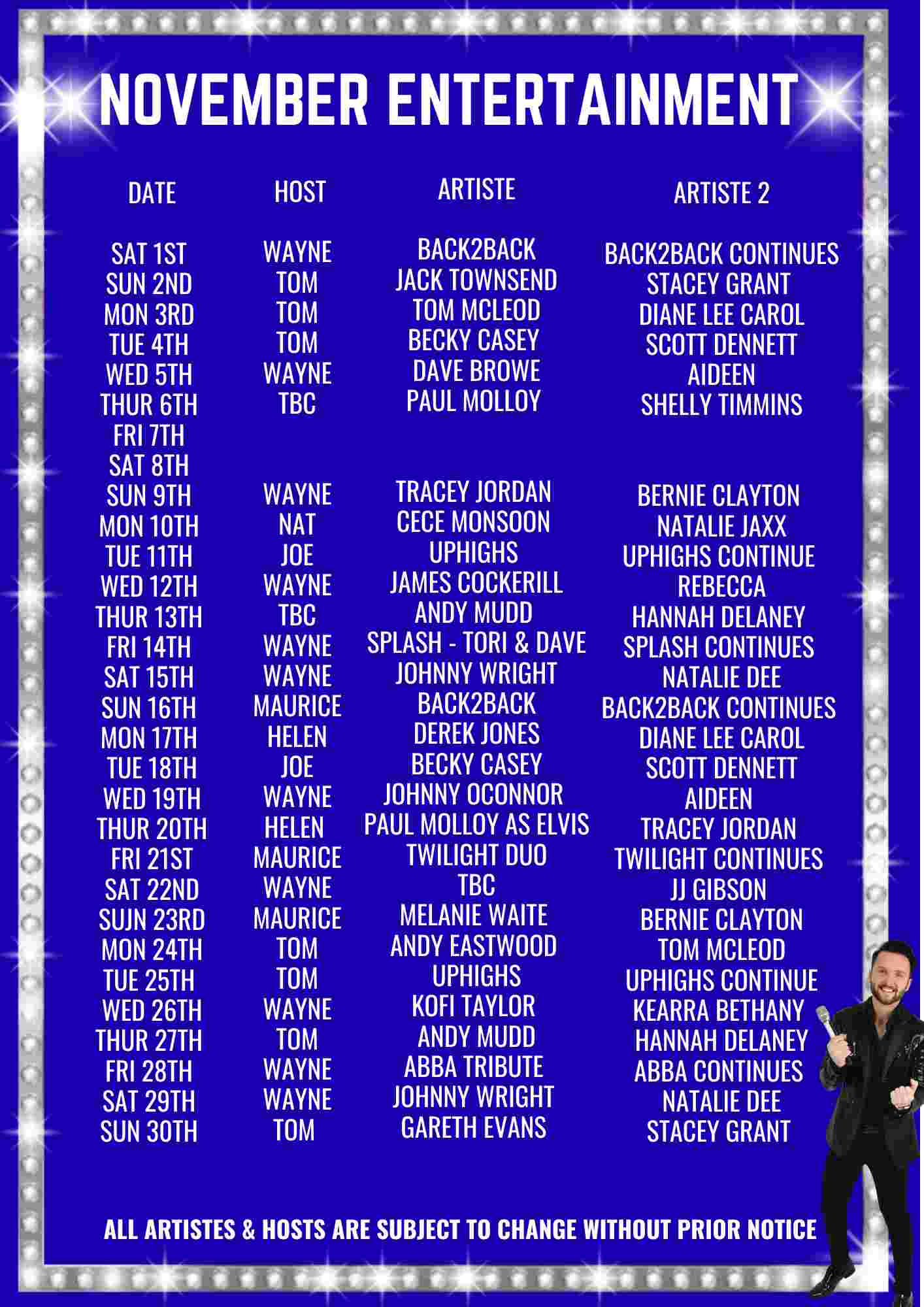Check out the incredible line-up we have planned on our entertainment guides below.